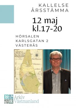 Kallelse till årsstämma 12 maj 2026 Kallelse till årsstämma för Arkiv Västmanland 12 maj 2026 Tid: 17:00-20:00 Plats: Hörsalen Karlsgatan 2, Västerås Program för kvällen hittar ni i kallelsen. Anmälan: Anmälan till stämman ska ha inkommit senast den 4 maj